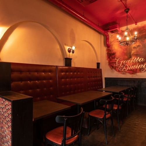 블랙과 레드의 콘트라스트가 세련된 테이블석은 2인용×1탁, 4인용×3탁을 준비하고 있습니다.점내 안쪽의 박스석은, 최대 14분까지 OK! 연회시는 테이블을 연결해, 개인실 감각으로 이용하실 수 있습니다.연회, 회식에 추천입니다.